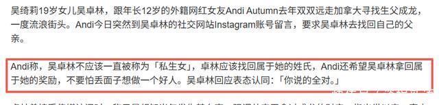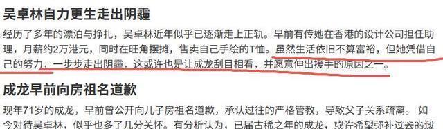 2019年,吴卓林和Andi的一番互动,更是引来骂声。Andi发文说,卓林该找回自己的姓氏,拿到应得的“奖励”。吴卓林直接回复“你说的都对”。 两人一唱一和,明摆着是喊话成龙认女,还疑似讨要财产。再加上她出国一年多依旧无所事事,甚至被曝拖欠房租,网友对她的同情彻底变成了失望。